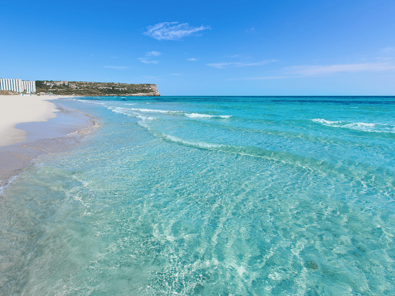 La spiaggia sabbiosa più lunga di Minorca, perfetta per nuotare e per le famiglie.
