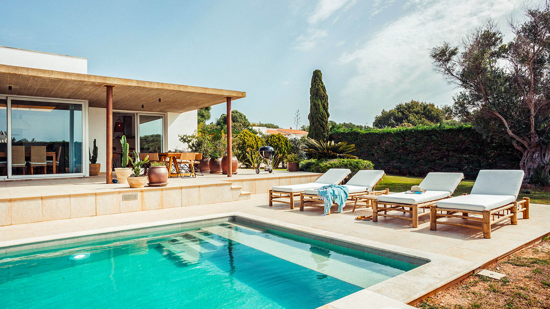 Arredata con gusto, questa graziosa villa presenta interni in stile mediterraneo e mobili di qualità. È l'ideale per famiglie e gruppi che cercano un rifugio di lusso per rilassarsi e concedersi una vacanza a Minorca. Il punto forte di questa villa è la sua fantastica terrazza a bordo piscina con eleganti posti a sedere e un tavolo da pranzo all'aperto per cenare all'aperto, così come la sua spettacolare terrazza sul tetto con vista sul mare e sugli ulivi, pini e palme caratteristici di Minorca.